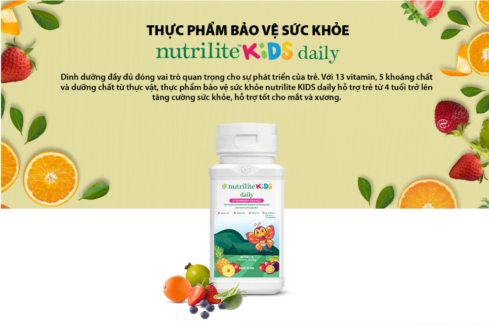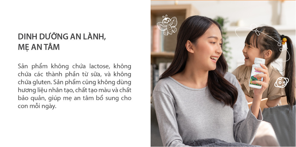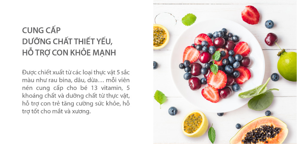 Công dụng: Bổ sung 13 vitamin và 5 khoáng chất cần thiết. Hỗ trợ tăng cường cho sức khỏe, tốt cho xương và mắt ở trẻ em.